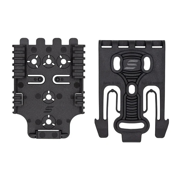 The QLS (Quick Locking System) allows for quick transfer of gear between attachment points such as a belt loop, tactical leg shroud or other stable platform. The QLS fork and plate combination passes the Level I Retention™ pull test. Allows users to rearrange gear quickly and easily without the use of tools. Hardware and Allen wrench included.